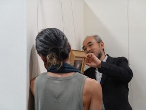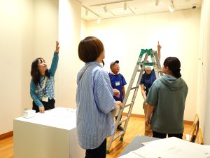 展示実践としてギャラリーに移動し、2グループに分かれ展示計画案を元に2箇所に展示を行いました。