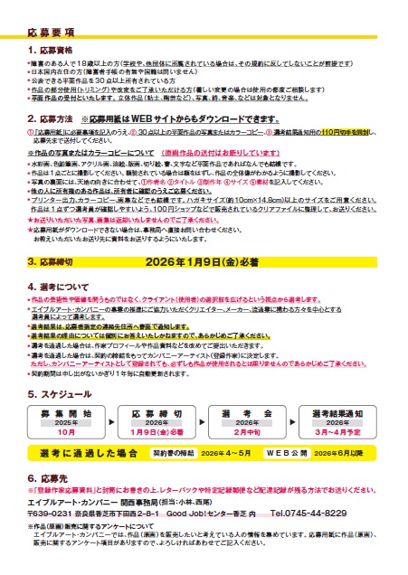 ・平面作品の受付といたします。立体作品(年度、陶芸など)、写真、詩、音楽などは対象となりません。