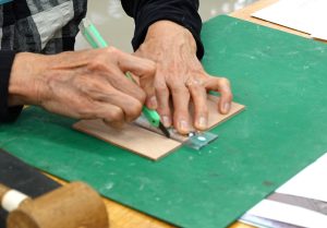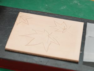 2 デザインを革に写し、カッターで切る