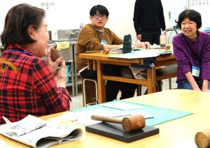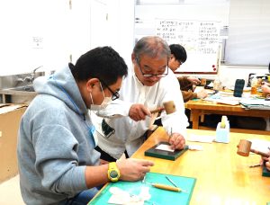 皆様、時間を忘れて懸命に木槌で叩いて凹凸を作っていきます・・・。