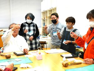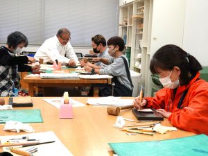 皆様、時間を忘れて懸命に木槌で叩いて凹凸を作っていきます・・・。