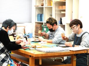 とても軽快な先生の木槌のリズムと刻印棒捌きが、あちこちで披露されていました。