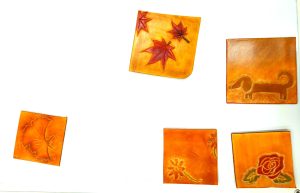 1 デザインとコースターの大きさを決め、程よい大きさに革を切る