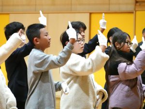 新しい曲では、講師の動作を見ながら表情豊かに手歌を行いました。